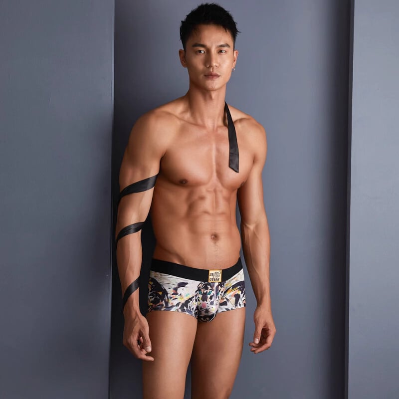 レオパード柄ボクサーパンツ アニマル柄メンズパンツ ゴールド ホワイト タイガー柄